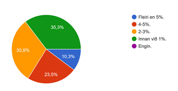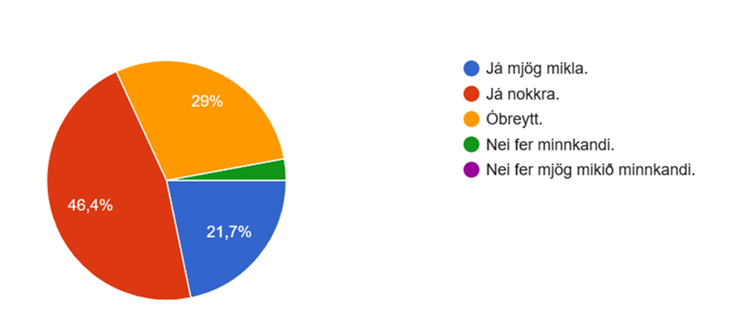 Spurningin „Eru margir unglingar í þínu umhverfi sem þú myndir telja að væru í mikilli áhættuhegðun (áfengi/vímuefni)?“ Undirstrikar mat á því hve þau sem vinna í nánasta umhverfi barna og ungmenna meta stöðuna alvarlega.